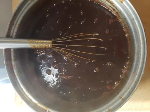 1 cup red maple syrup - I had boiled it down to 80% sugar concentration which is much thicker than regular maple syrup (possible substitution of 1/2 cup regular real maple syrup and 1/2 cup molasses)